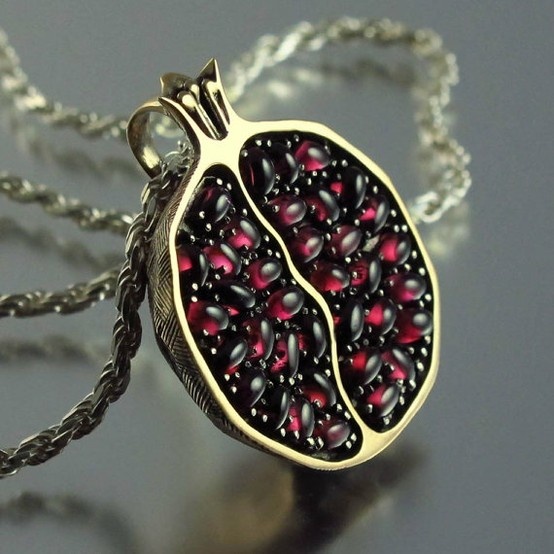 The name “garnet” comes from the Latin word “garanatus” meaning “seedlike”, in reference to a pomegranate and the blood-red seeds inside the fruit. The pomegranate is believed to represent one’s own life, dying, and rebirth.