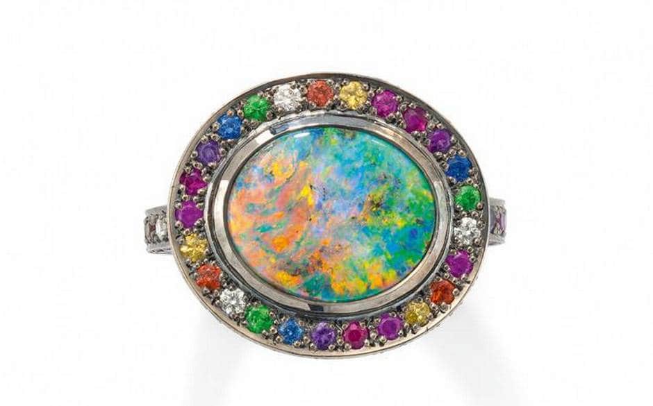 The escape capri ring by Louis Vuitton. Jill Hoffmeister Opal ring. Brooke Gregson Opal ring. Chromatic opal ring by Solange Azagury-Partridge.